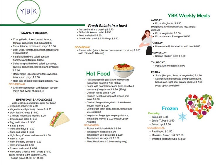 Our canteen menu can be downloaded here as a PDF